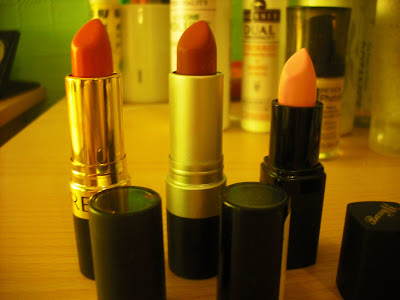 Lipstick from L-R: Revlon Superlustrous Lipstick in 700 Fire and Ice, Revlon Matte Lipstick in 006 Really Red, Barry M Lip Paint in 100 (Baby Pink)